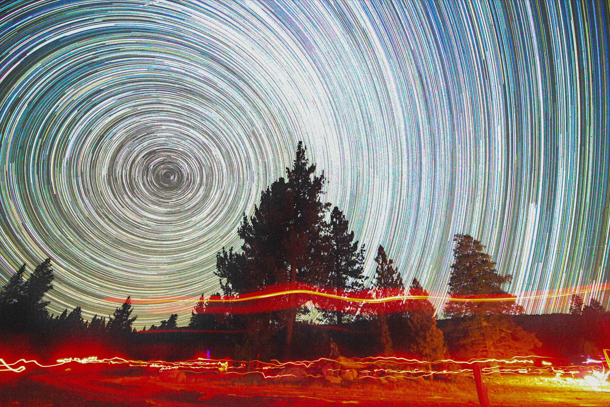 "Star trail taken during an astrocamp in San Pedro Mártir, under a Bortle 1 sky. It’s amazing how you can actually see the Earth rotating in space. At the center you can find Polaris, the North Star, always in the same spot"